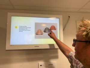 当日は、センター長の Lippo 先生 から、使用されている機械や材料、現在進められている研究内容について、直接レクチャーを受ける機会にも恵まれました。
